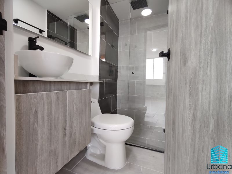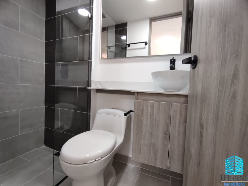 Este hermoso apartamento, con acabados modernos, cuenta con un area de 58 mtrs, piso 18, con dos habitaciones y cada una de ellas con closets, dos baños cabinados y enchapados, sala comedor el cual cuenta con espacio para zona de estudio, balcón, cocina, red de gas, zona de ropas y calentador.